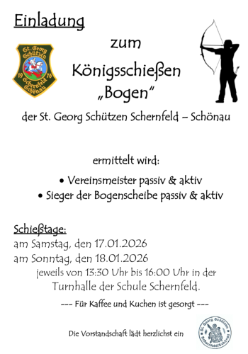 " Nicht vergessen das Königsschießen 2026 beginnt mit dem Bogen ! "